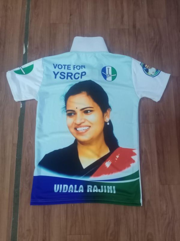 Printed customised T-shirts for election campaign. Tee Shirts, Shawls, Head Bands, Wrist Bands with candidates' photos and election symbols to make an impact in elections.